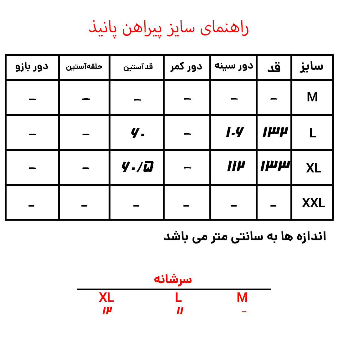راهنمای سایز