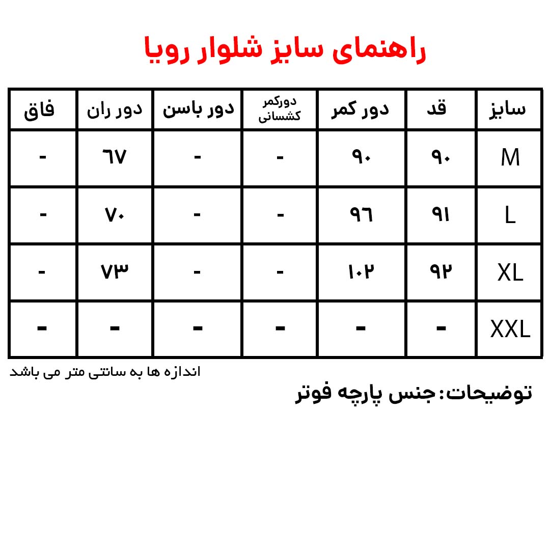 راهنمای سایز