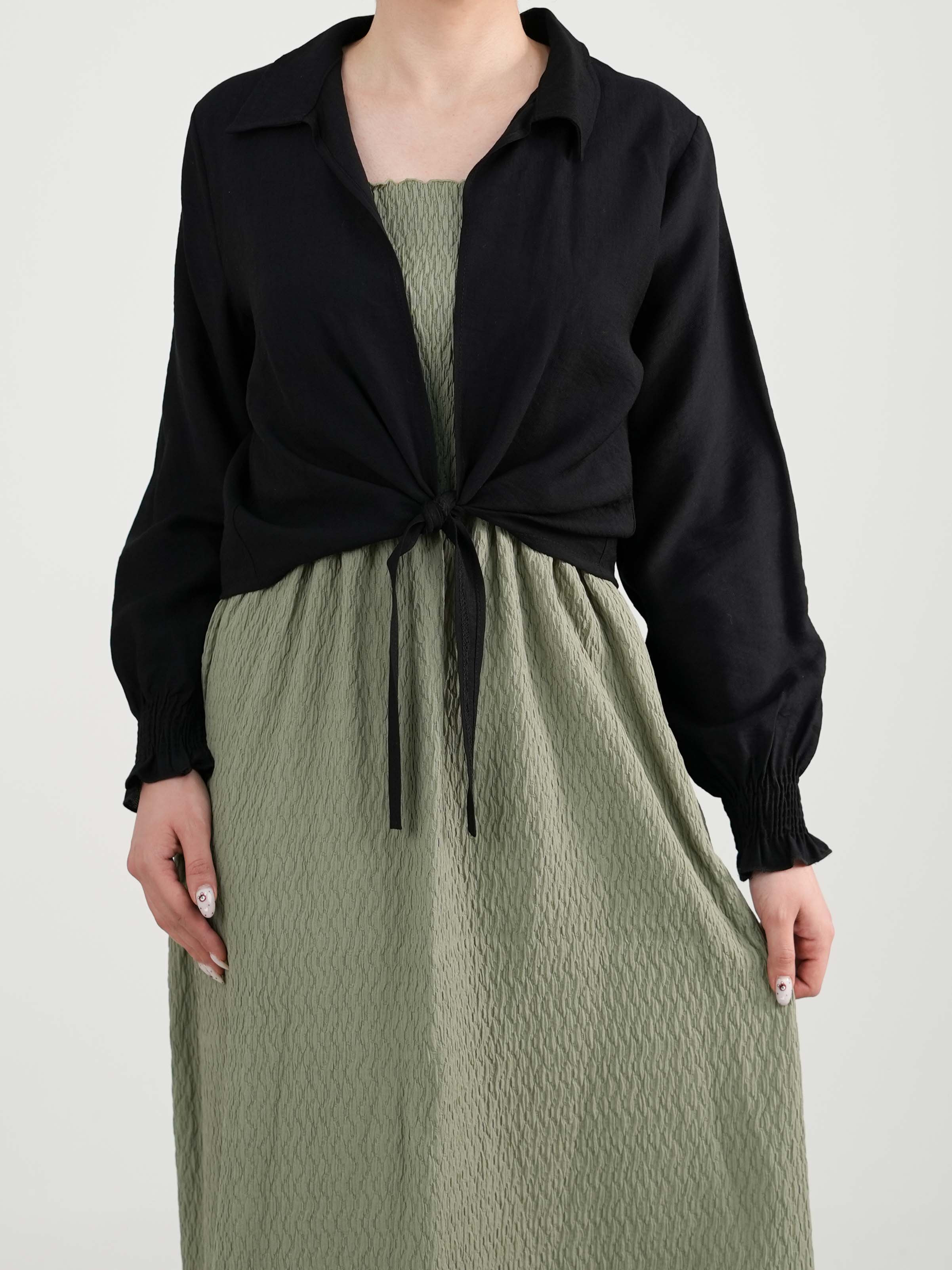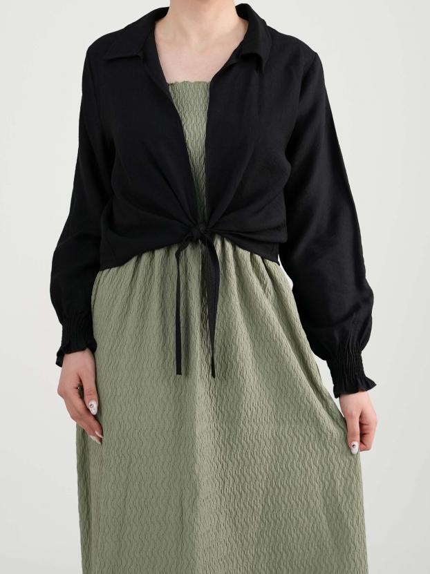 از جزیئیات محصول میتوان به آستین کش بافت اشاره کرد.