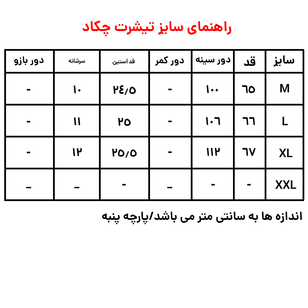 این تیشرت در سه سایز M L XL موجود میباشد.