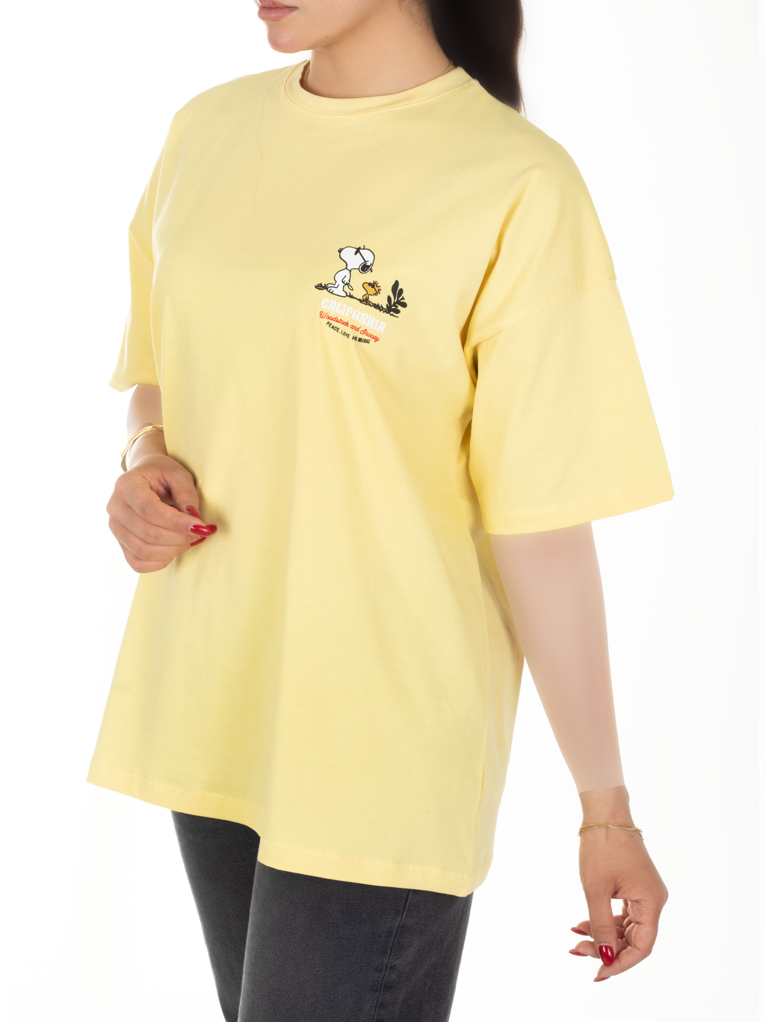 این تیشرت با طرح های فانتزی، جنسش از تریکو (پنبه) است . الگوی این محصول لانگ است. با انواع شلوارهای جین مام، واید، اسکینی و.... استایل میشود. یقه آن گرد است. چاپ های این تیشرت در هر رنگ متفاوت است.